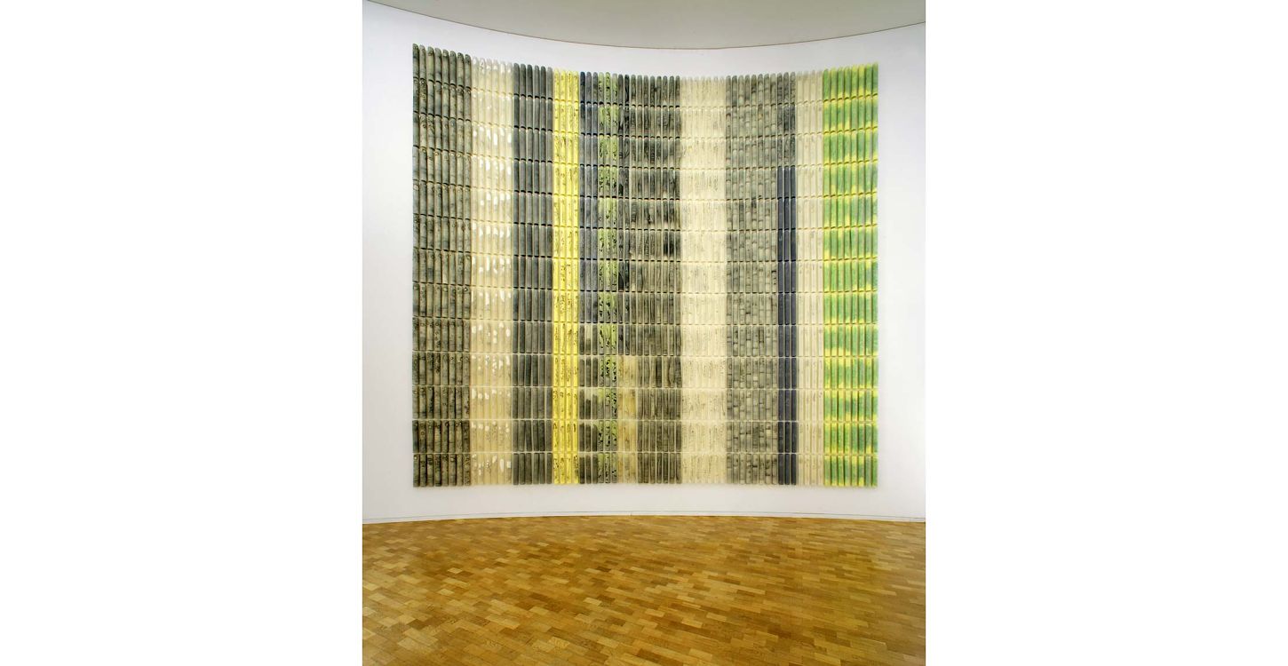 Je nach Ausstellungsfläche besteht die Wandinstallation aus einem Block von 500 bis 1.000 Röhren. Es sind Pflanzen aus 24 Pflanzenfamilien.
